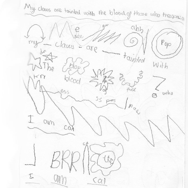 Our younger participants, some of whom had little formal music education created exciting cats choruses, progressing from experimenting with cat sounds and “translating” these into English, to creating visual scores. As a final step, they composed melodies which are used in the choruses.